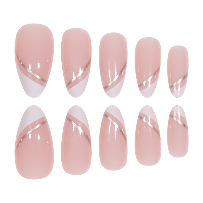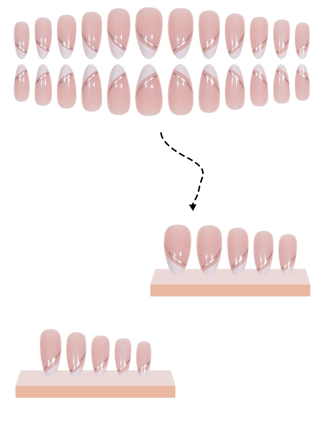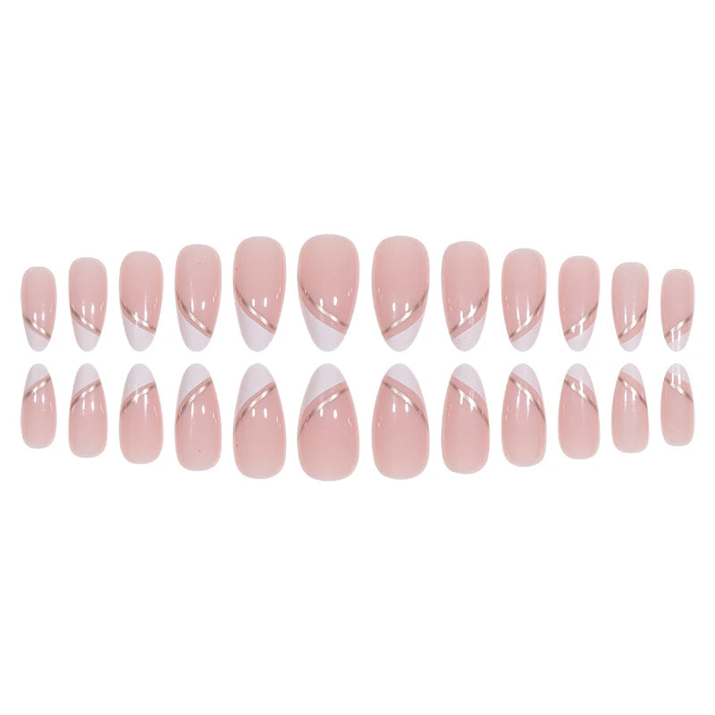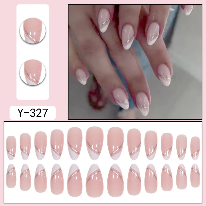 24PCS/1BOX Droplet shaped Double layered French Dress Sweet Nail Patch Bright Light Color Fake Nail