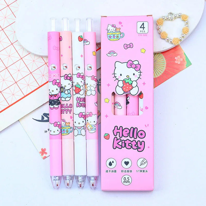 4Pcs Sanrio Hello Kitty Pen Gel Black Bullet Tip Cartoon 0.5mm Ballpoint Pen School Office Supplies Stationery Accessories Gift